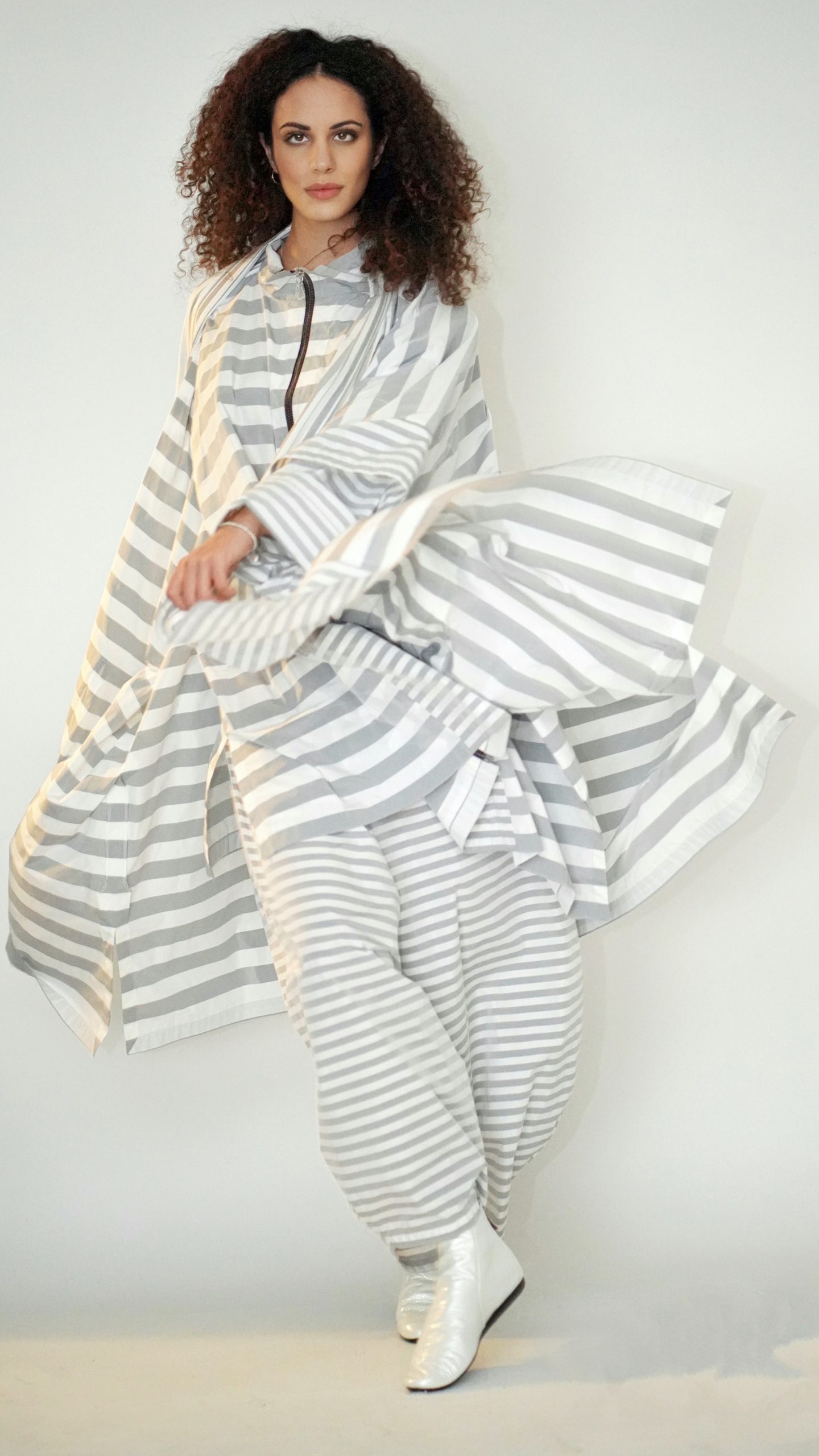Modelle/Grössen: Blusen/Oberteile: One Size, Länge zw. 80 bis 100 cm, weit geschnitten, Rundhals oder V-Ausschnitt, mit und ohne Ärmel; Hosen: Breite, gerade Beine, ca. 95 cm lang, mit Gummizug, Grössen auf Anfrage; ‹Harem› (bauchige Beine, gegen unten verengt), ca. 95 cm lang, Grössen auf Anfrage; Gilets/Westen: One Size, weit geschnitten, 80 bis 100 cm lang, mit oder ohne Kragen; Jacken: One Size, weit geschnitten, 80 bis 105 cm lang, mit Steh- oder Schalkragen; Schals: ca. 200 cm lang und weite Rollkragen/Schalkragen;
