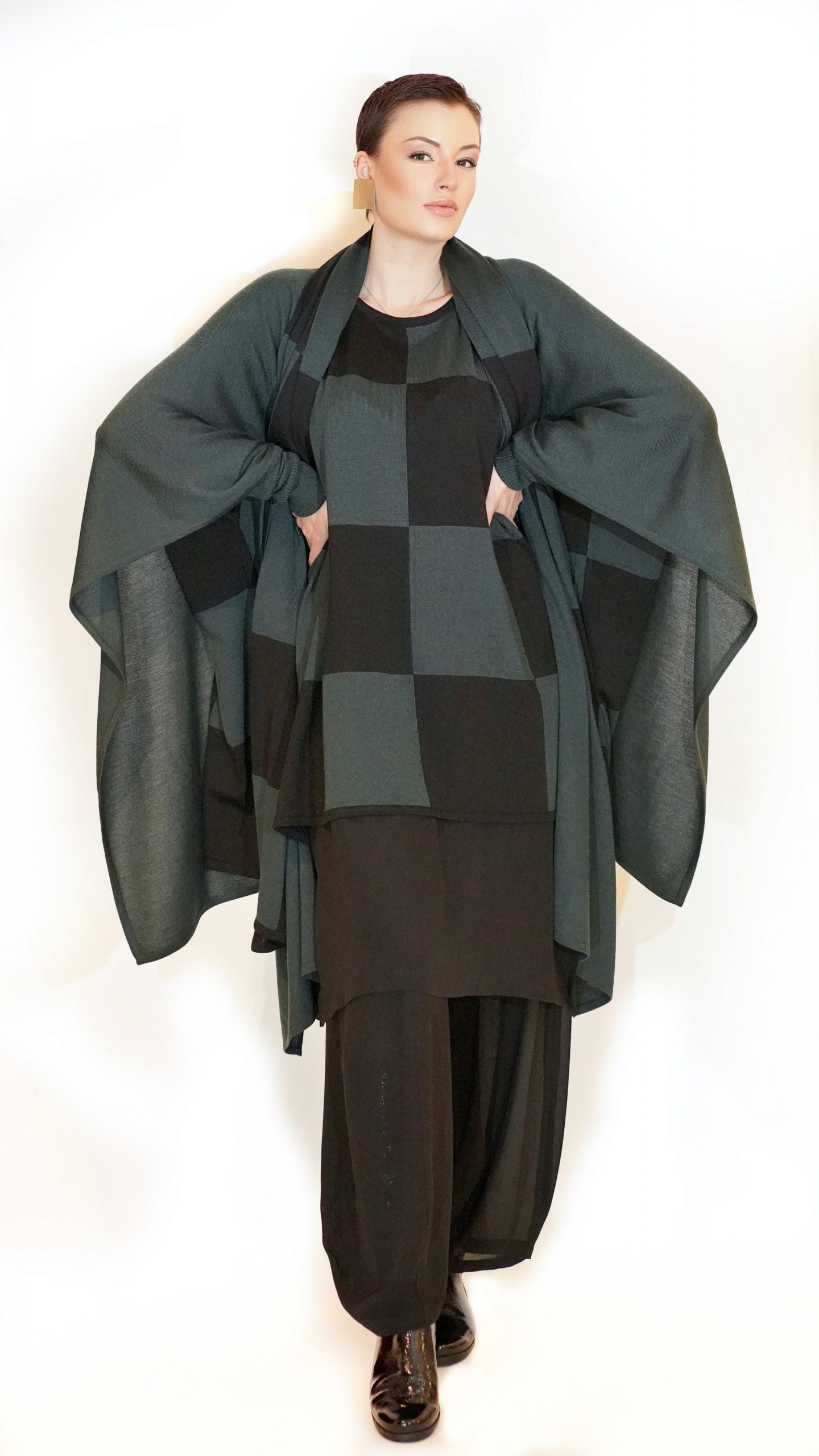 Modell: Pullover Karo ohne Ärmel; Rundhals, One Size, ca. 80 bis 90 cm lang, 110 bis 120 cm breit