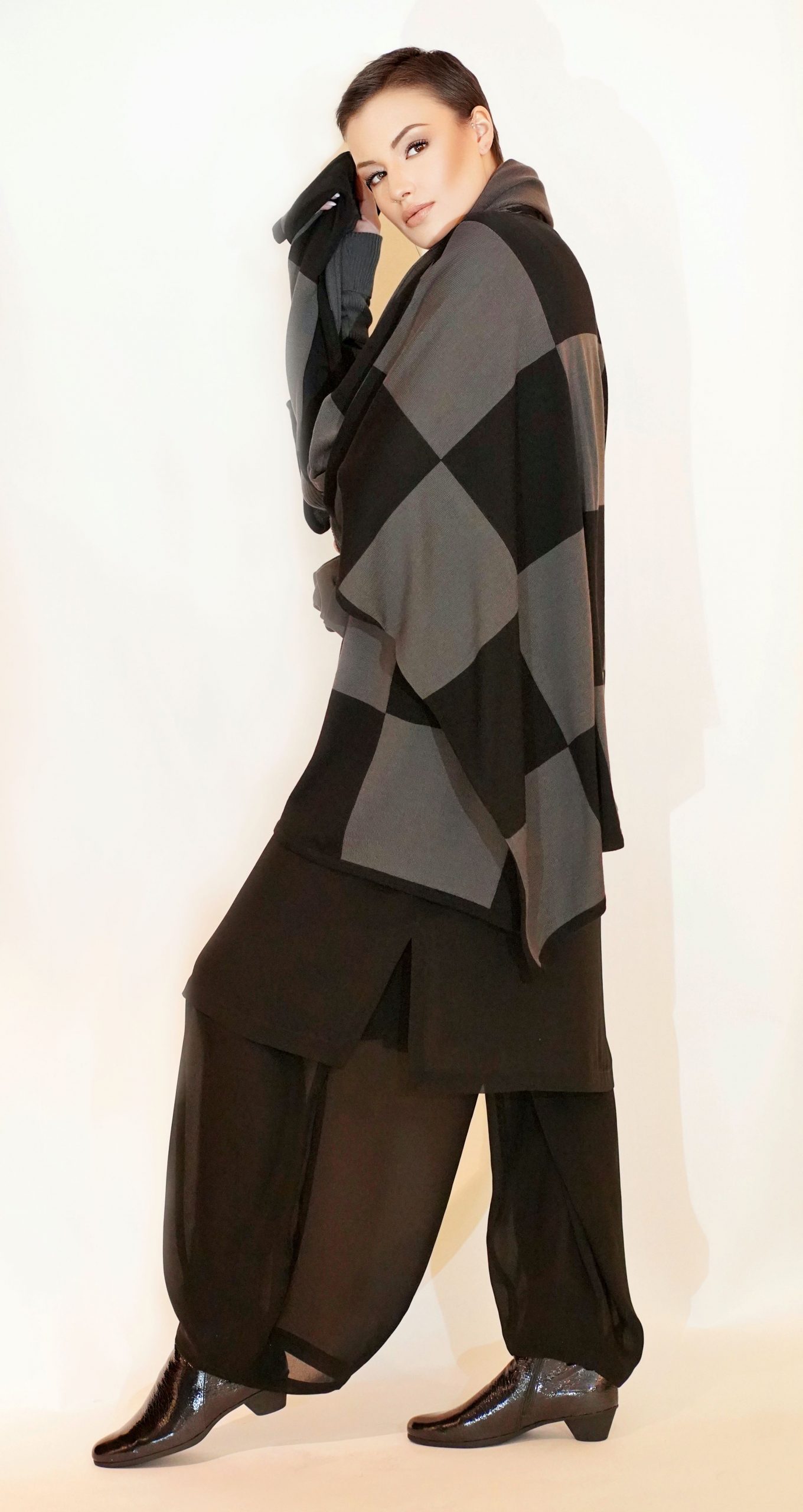 Preis: Pullover: CHF 685.- ; Schal: uni CHF 385.- ; Karo: CHF 465.- ; Armstulpen: CHF 125.- ; Hosen: CHF 485.- ; Lackstiefel Arche: CHF 315.-